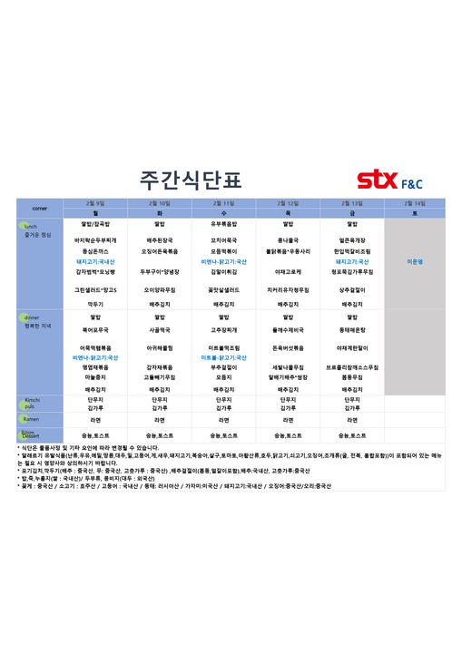 울산테크노파크매곡점 - 2월 2주 식단표