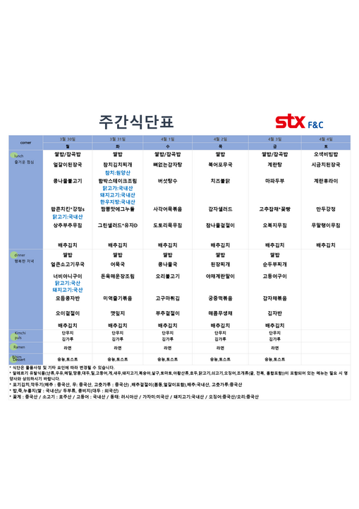 울산테크노파크매곡점 - 4월 1주 식단표