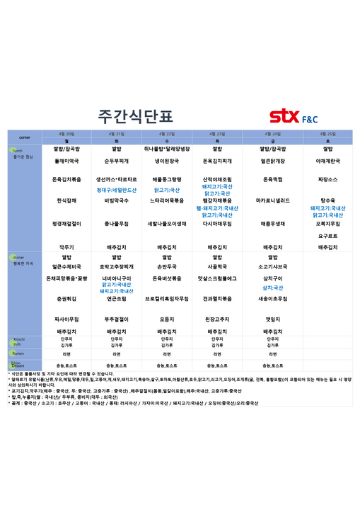 울산테크노파크매곡점 - 4월 4주 식단표